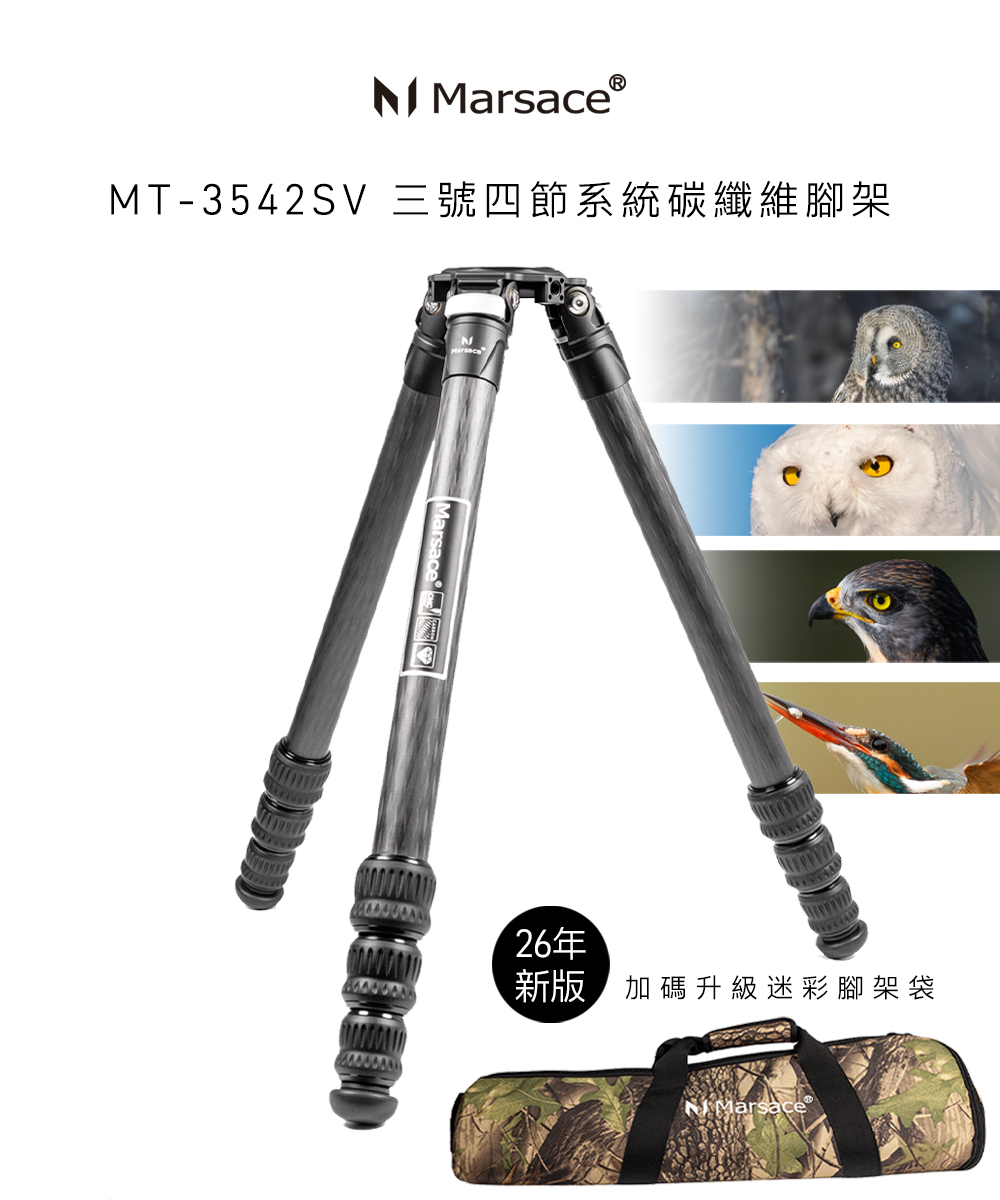 Marsace MT-3542SV 三號四節系統碳纖維三腳架 迷彩限量包款 飛羽攝錄影 飛羽 拍鳥 攝錄影專用