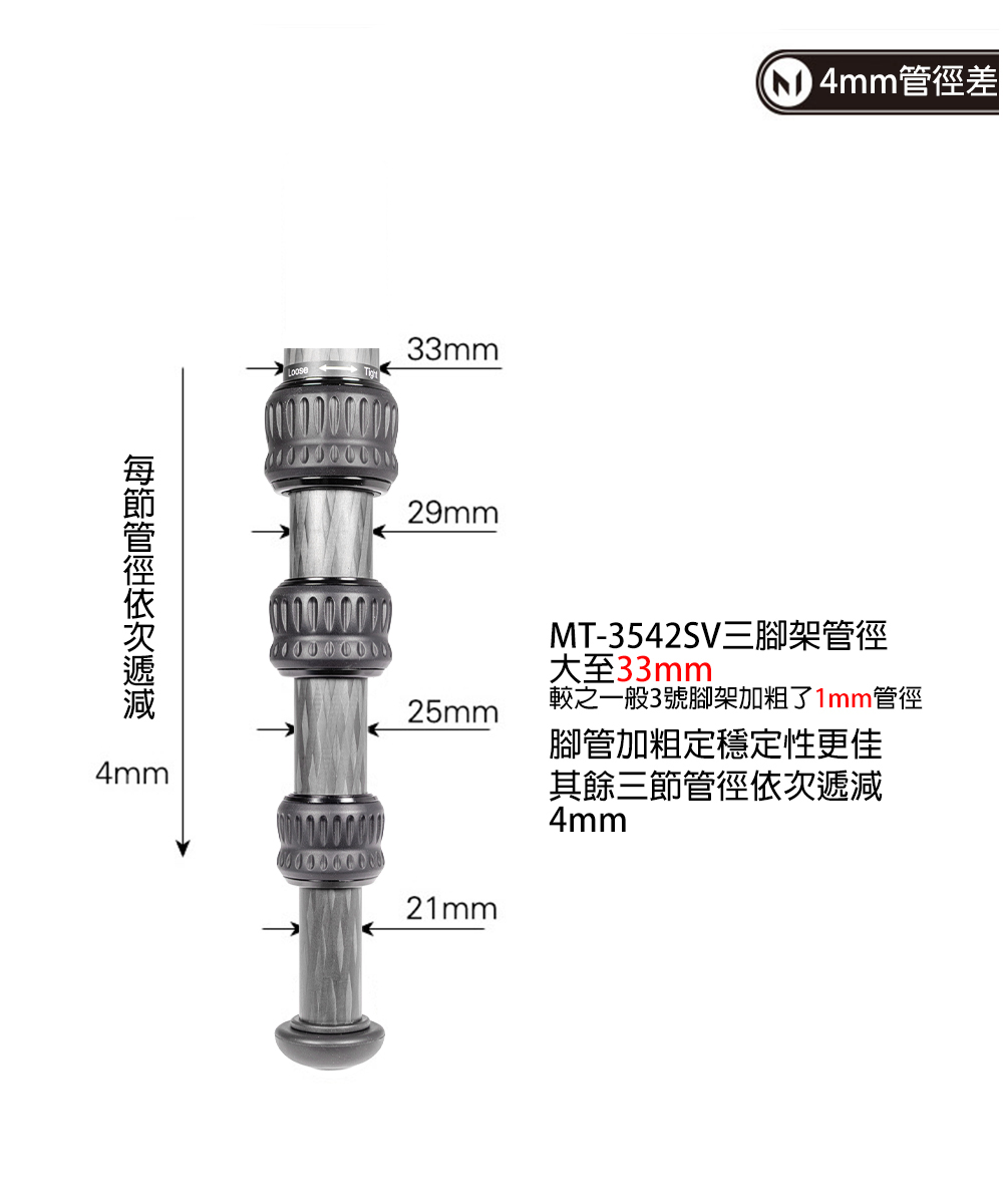 🔹 腳管直徑:最大 33 毫米,提供穩定支撐