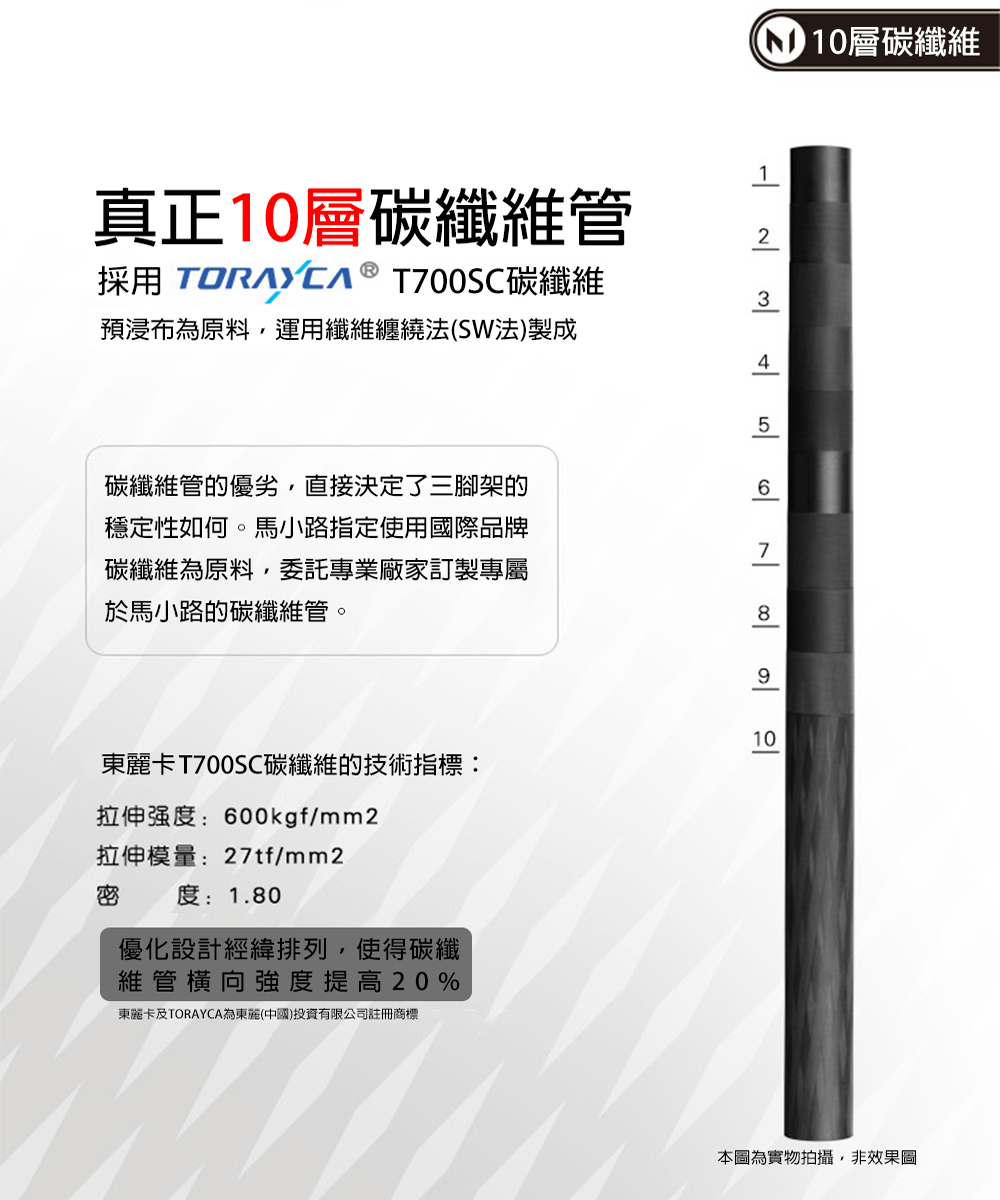 🔹 腳管材質:10 層碳纖維,高剛性與輕量兼具