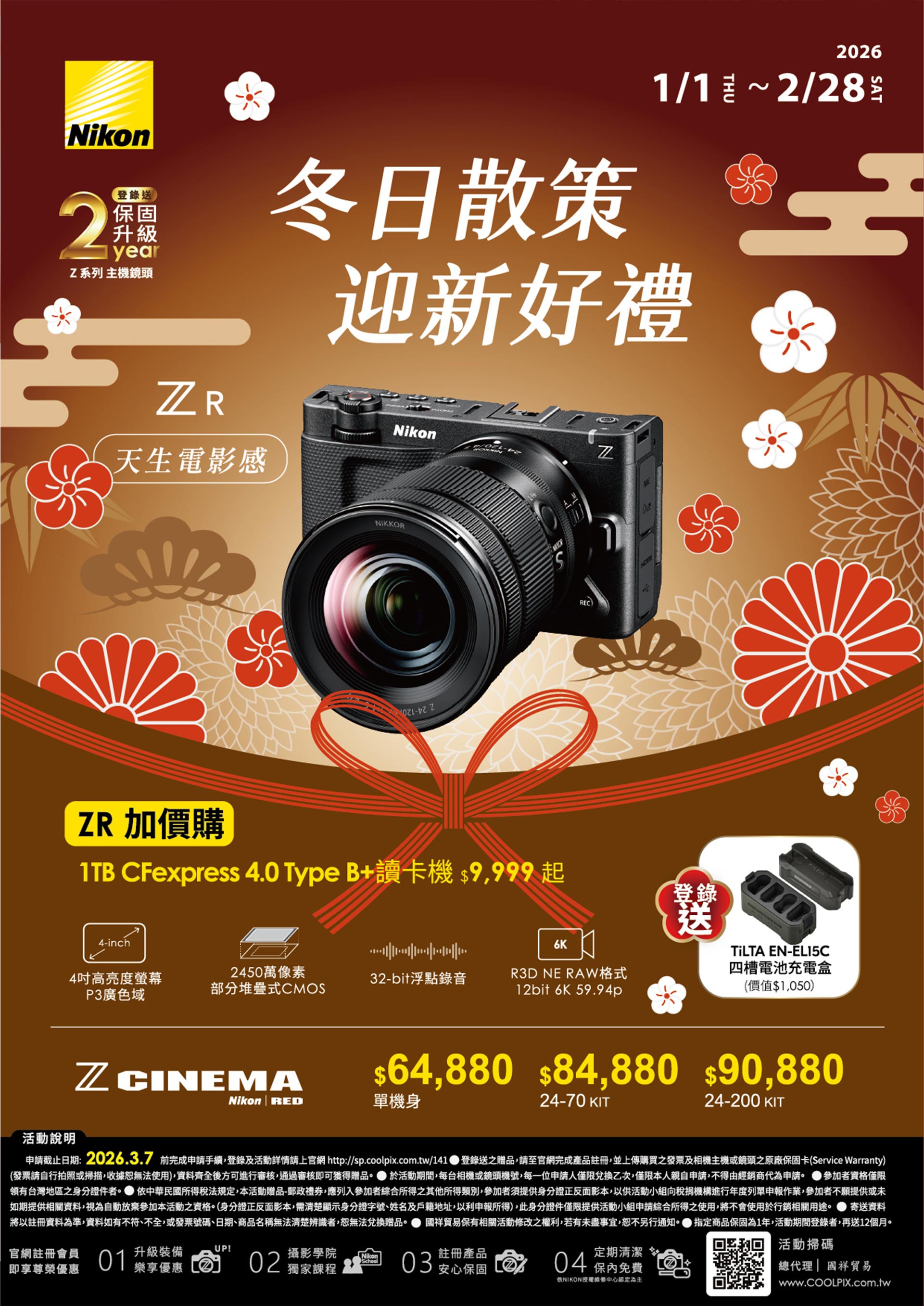 🔥115/1/1~115/2/28🔥活動期間購買登錄贈保固升級2年 + SD 128G V60高速記憶卡