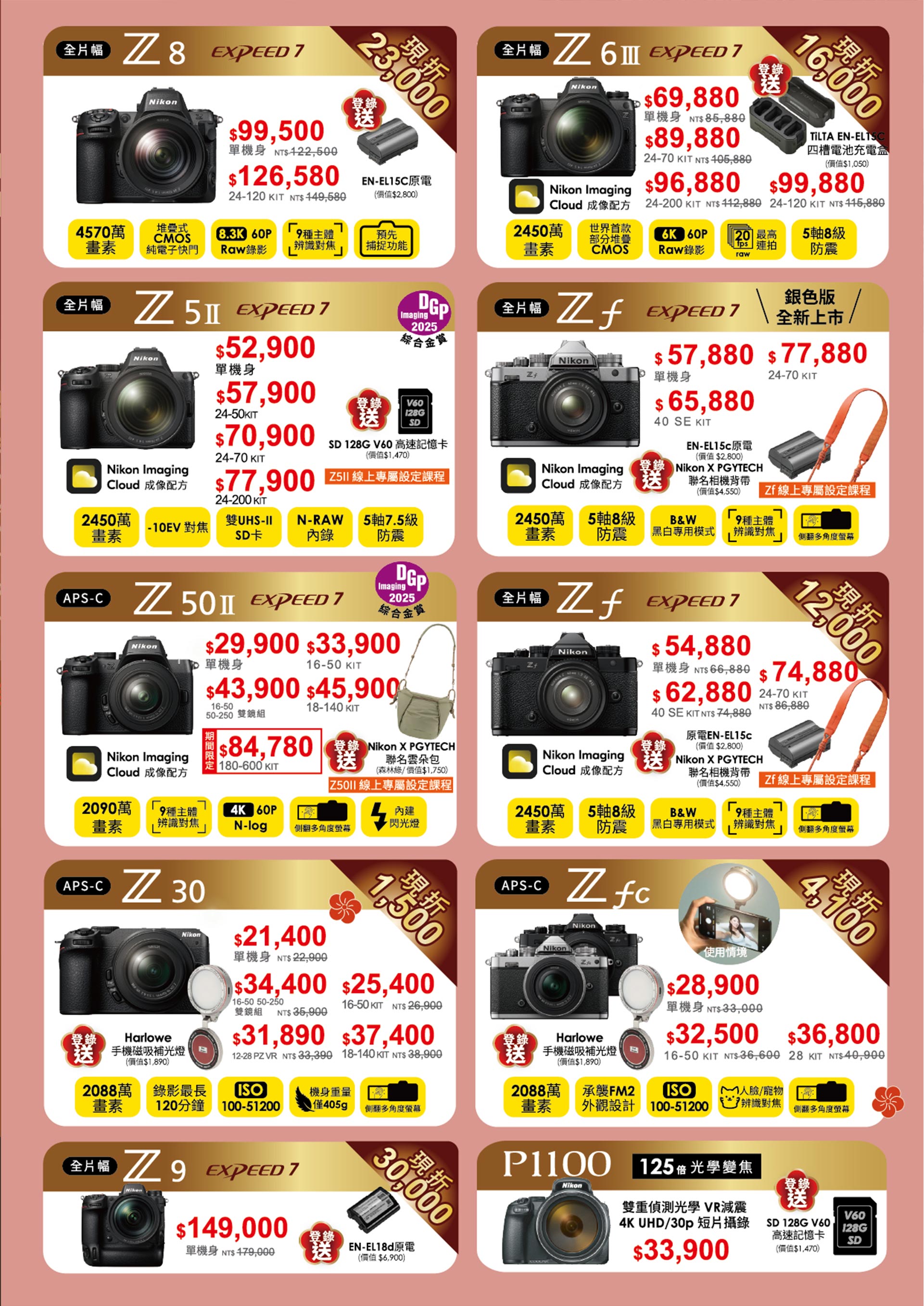 🔥115/1/1~115/2/28🔥活動期間購買,Z系列鏡頭登錄贈保固升級2年 + PGY多功能包布